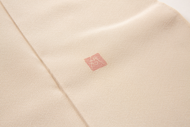 「雪持ち笹」:笹は竹の仲間ですが竹とは違います。笹は細く丈の短い物や、熊笹のように葉の幅が広い物も有ります。雪笹は家紋の模様としても伝えられて来ましたが、重い雪が降り積もっても折れることなくじっと耐え、ついには雪を払って跳ね上がったり、雪解けに復活する健気な姿が大和心と重なり、特に武士の世界に好まれてきたようです。また白雪と笹の色や形の対比が美しく意匠としても様々に愛されて来ました。空から幽かに降る雪片と共に雪中の静けさが伝わってきますが、温かみのある淡い地色が冷たさを打ち消してくれています。着ることで心が落ち着く優しい着物となりました。勿論若い方々にも着ていただきたいのですが、もう少し人生の先輩方に是非お召し願いたい着物です。