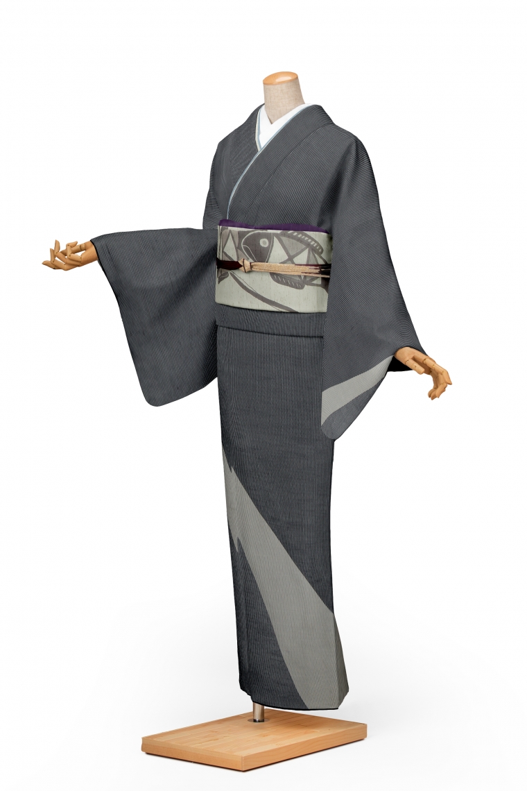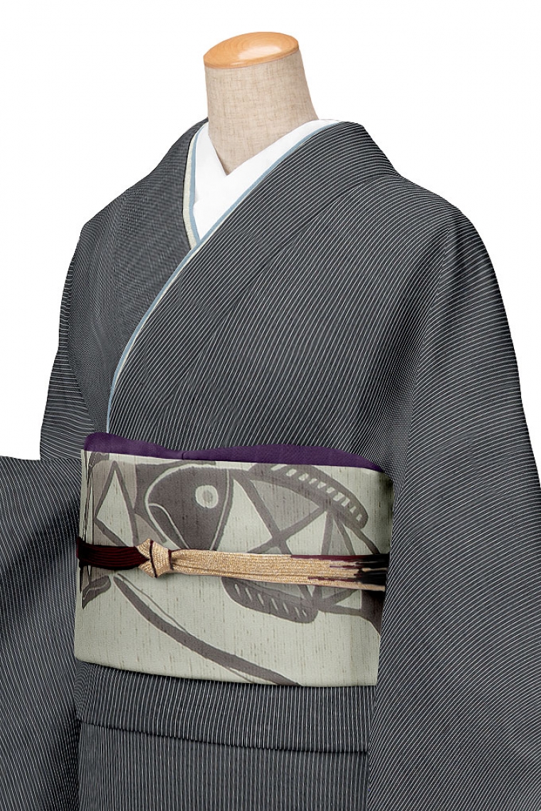 訪問着レンタル 訪問着Lサイズ 紬:縞 グレー サイズ:L 158~168cm 表地:正絹