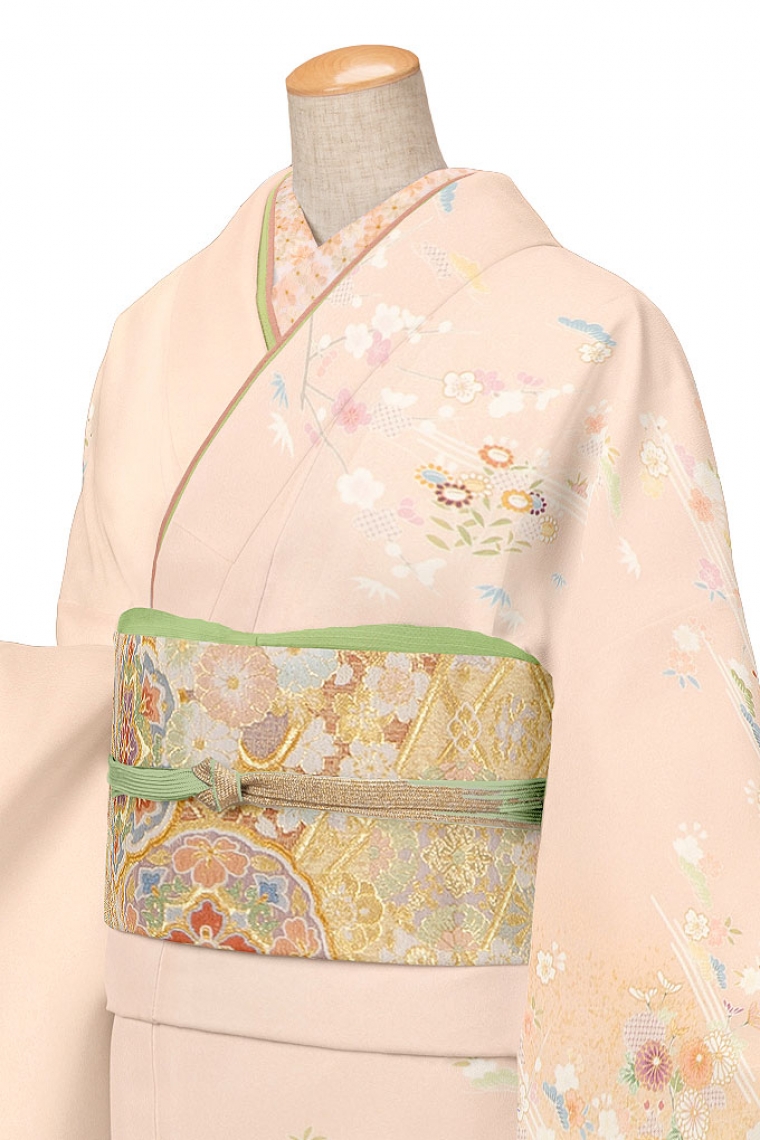 訪問着レンタル 訪問着Mサイズ 花散し 薄ピンク サイズ:M 153~160cm 表地:正絹