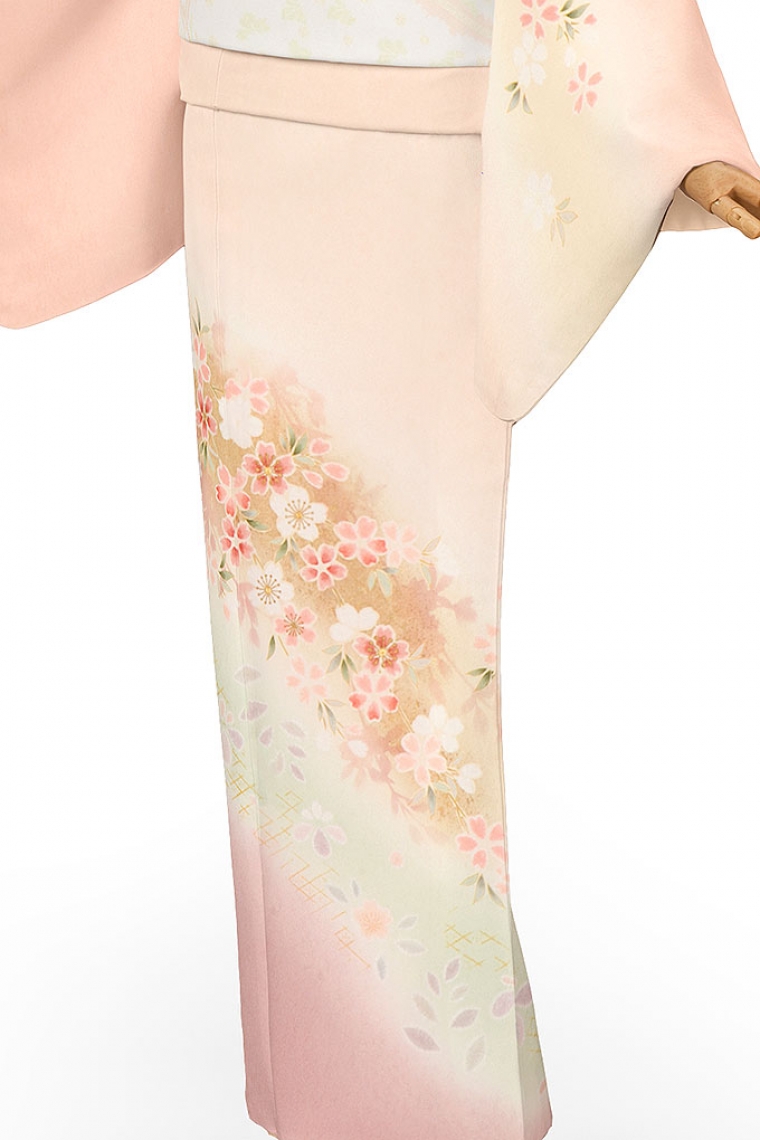 訪問着レンタル 訪問着Lサイズ 桜流水 サーモンピンク サイズ:L 158~168cm 表地:正絹