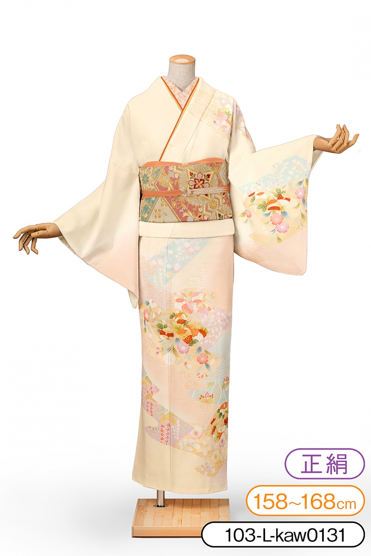訪問着レンタル 訪問着Lサイズ 松皮菱に慶長桃山文 クリーム/ピンク サイズ:L 158~168cm 表地:正絹