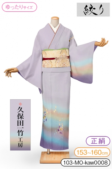 訪問着レンタル 訪問着MOサイズ 辻ケ花染:初代久保田一竹 藤紫 サイズ:M-O 153~160cm ゆったりサイズ 表地:正絹
