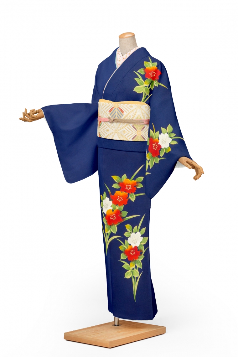 訪問着レンタル 訪問着Mサイズ 花 濃紺 サイズ:M 153~160cm 表地:正絹