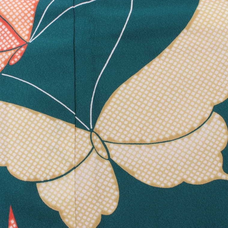 訪問着レンタル 訪問着Lサイズ ブランド:きもの道楽 舞蝶 濃緑 サイズ:L 158~168cm 表地:合繊