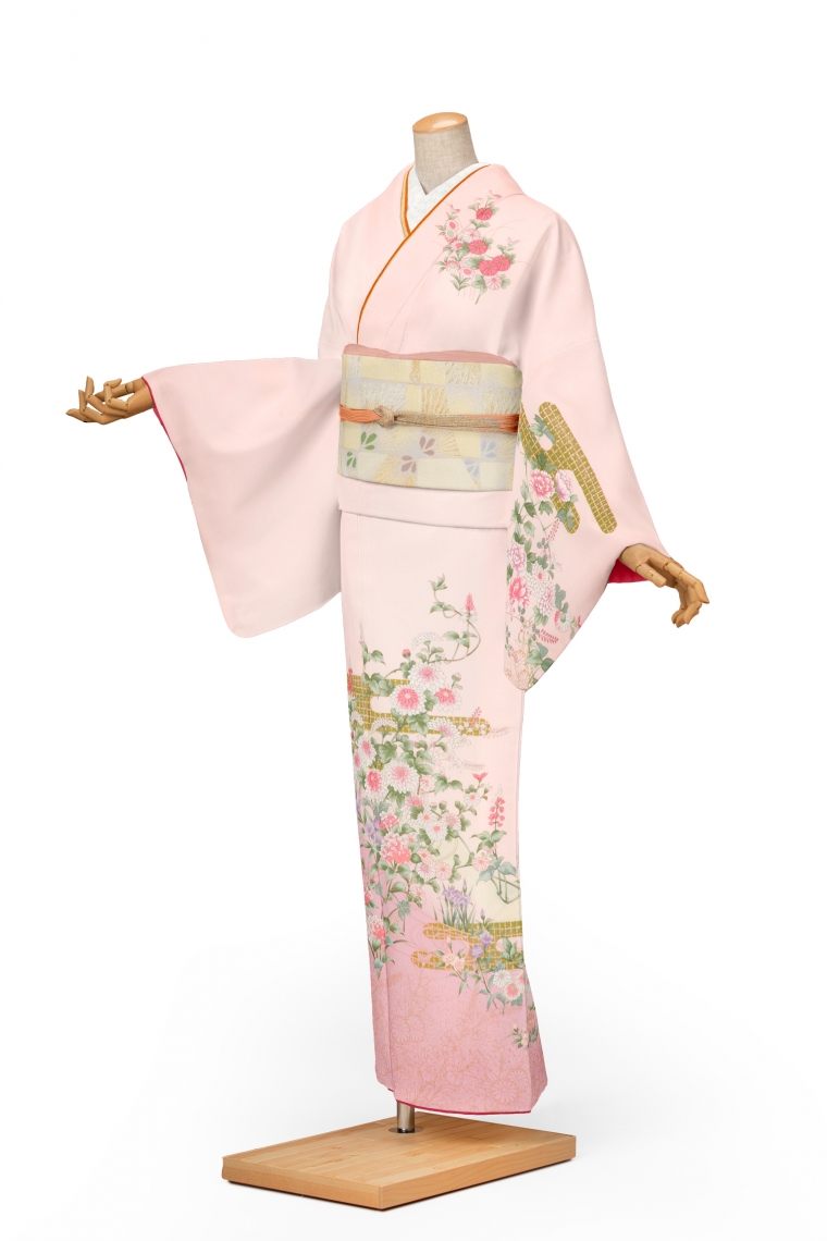 訪問着レンタル 訪問着Lサイズ 菊に霞取り文様 ピンク サイズ:L 158~168cm 表地:合繊
