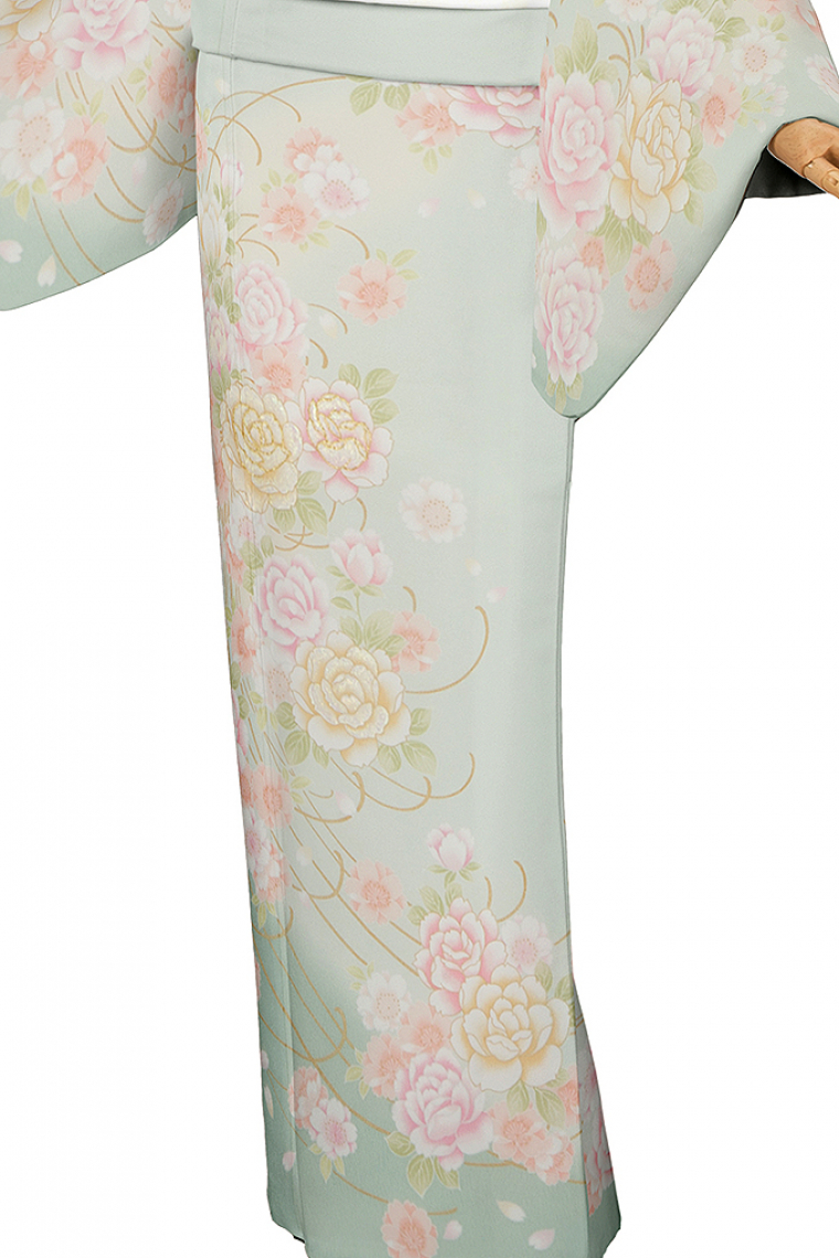 訪問着レンタル 訪問着Lサイズ 華の饗宴 薄グリーンぼかし サイズ:L 158~168cm 表地:合繊