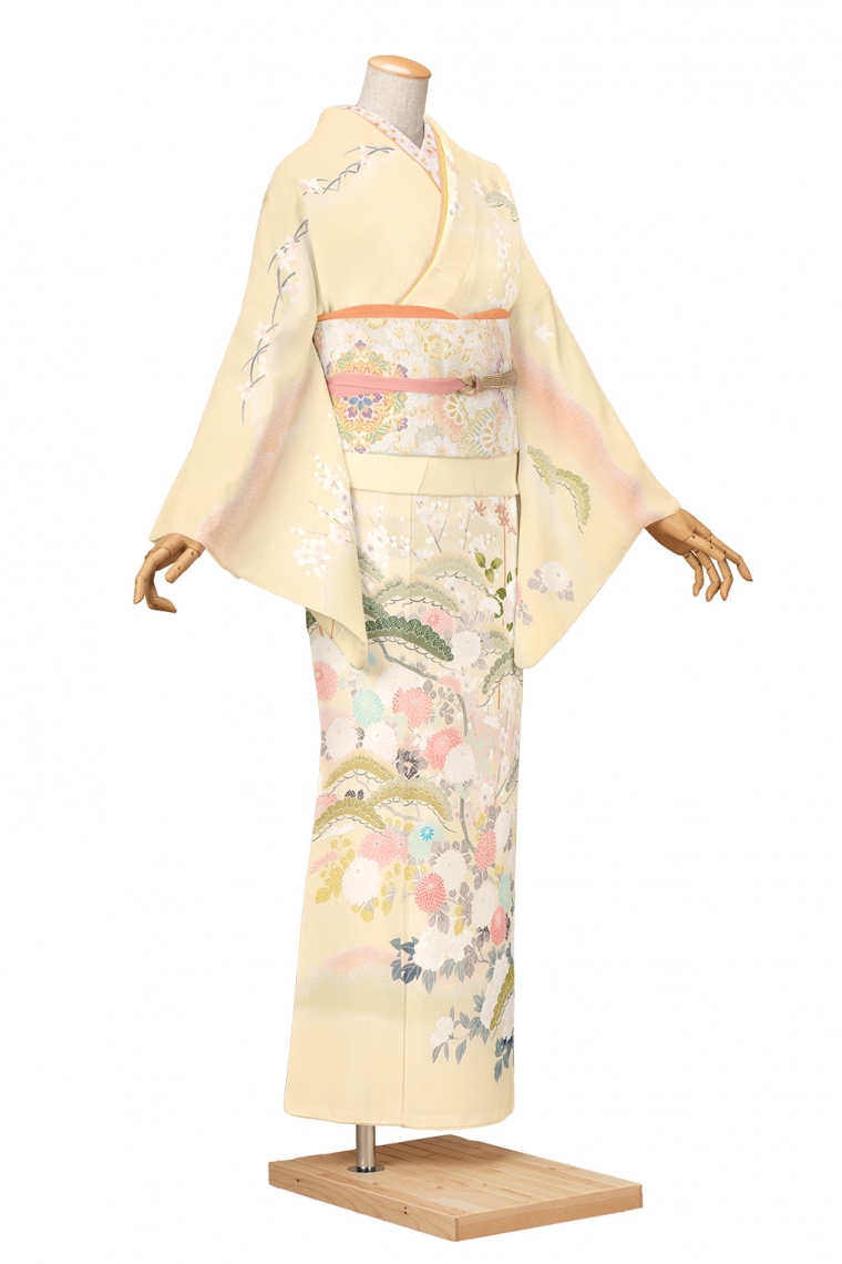 訪問着レンタル 訪問着Lサイズ 京友禅:二代目山科春宣 佳月 クリーム サイズ:L 158~168cm 表地:正絹