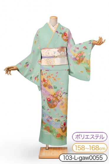 訪問着レンタル 訪問着Lサイズ 道長取りに花籠 エメラルドグリーン サイズ:L 158~168cm 表地:合繊