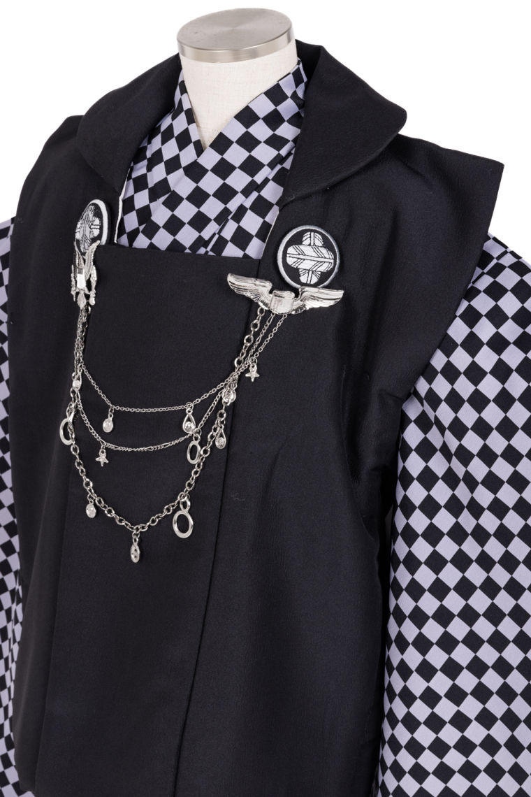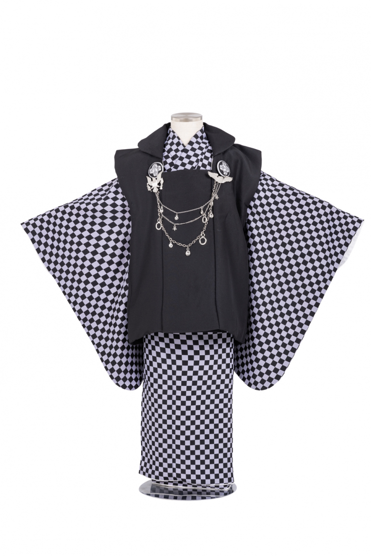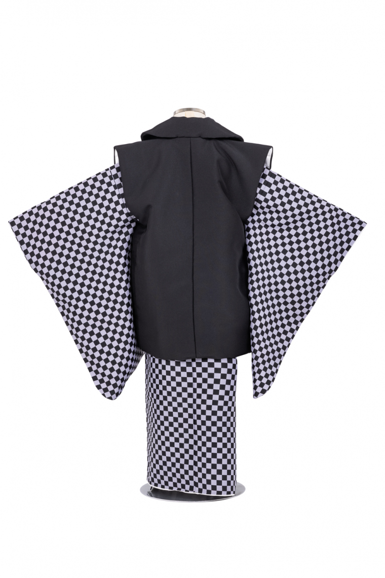 子供きもの 三ツ身被布セット 市松 黒/グレー サイズ:男児 87~99cm 表地:合繊