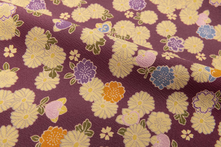 小紋レンタル 小紋Lサイズ 菊桜散し 似せ紫色 サイズ:L 158~168cm 表地:合繊