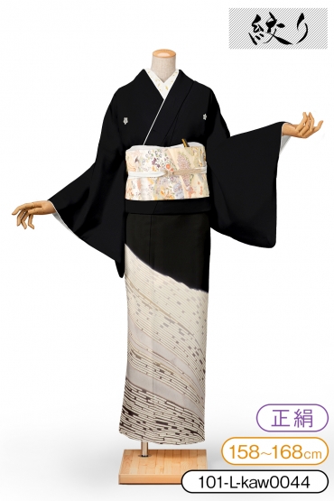 黒留袖レンタル 黒留袖Lサイズ 十日町友禅 絞り:滝泰 おぼろ染め流線 五つ紋:桔梗 サイズ:L 158~168cm 表地:正絹