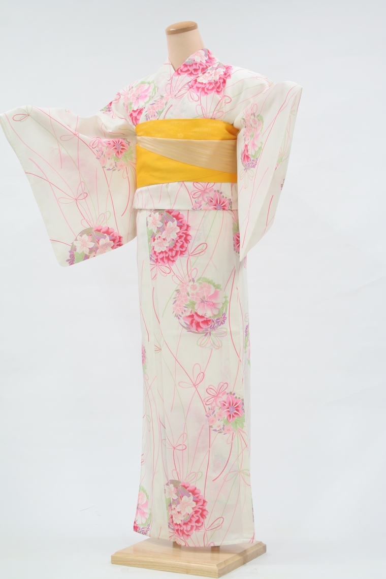 浴衣レンタル Lサイズ クリーム/薬珠 サイズ:L 158~168cm 表地:ポリエステル100%