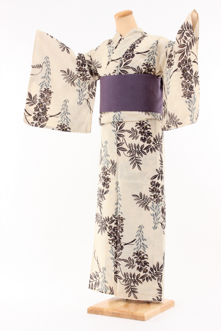 浴衣レンタル Mサイズ クリーム/藤 サイズ:M 153~160cm 表地:綿80% 麻20%
